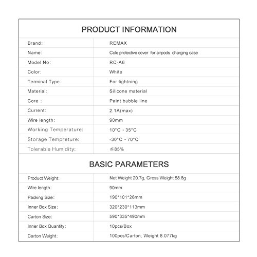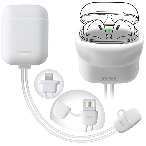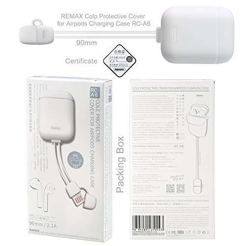 Remax - جراب حماية سيليكون كول لحافظة شحن الايربود وكابل يو اس بي 2.1 امبير من ريماكس RC-A6 - ابيض، لسماعات ايربودز