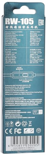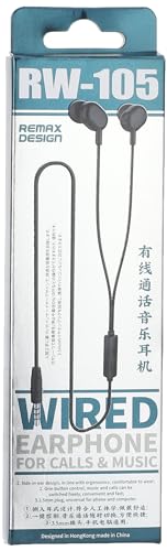 Remax - سماعة أذن بسلك من ريماكس، بجودة صوت ستيريو مع ميكروفون بزر للتحكم ومقبس 3.5 ملم، سماعات للرأس بلون أسود، RW-105