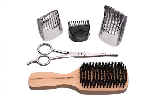 - مشط قابل للتعديل مقاس XL (20-35 ملم)، مشط قابل للتعديل للقطع القصيرة (1.5-18 ملم)، مشط اللحية القصيرة (1-5 ملم).