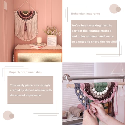 - [مكرمية بألوان قوس قزح جديدة للتعليق على الحائط - روح حرة] مكرمية بوهو شبه دائرية مصممة بشكل معقد بألوان دافئة، تجسد جوهر الروح الحرة للنمط البوهيمي. تقنية النسيج الرائعة والحرفية ترتقي بهذا العمل الفني إلى تحفة فنية عالية الجودة.