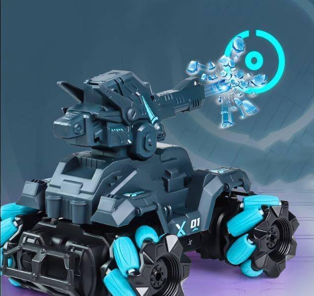 - تحكم متقدم: نظام تحكم لاسلكي 2.4 جيجاهرتز يتيح المناورة الدقيقة مع التعامل السريع والمدى الموسع لمعارك الدبابات المثيرة. ميزات المعركة: مجهز بوظيفة إطلاق قنابل مائية ويتضمن 5 شنط من ذخيرة القنابل المائية لمحاكاة قتالية واقعية. دوران 360 درجة: يسمح تصميم الزاحف الخاص بالدوران الكامل بزاوية 360 درجة والحركة متعددة الاتجاهات لتعزيز تكتيكات المعركة. حزمة الترفيه: يتميز بإضاءة ليد مدمجة وتأثيرات موسيقية تُضفي جوًا قتاليًا غامرًا أثناء اللعب. تفاصيل التصميم: هيكل متين بتصميم عصري مستوحى من الدبابات، باللون الأسود مع لمسات زرقاء وبرتقالية، مثالي للعب داخل المنزل أو في الهواء الطلق.