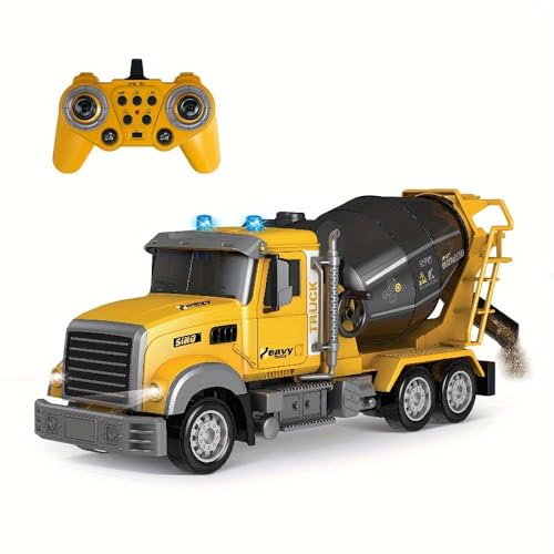 - تصميم واقعي: شاحنة خلط أسمنت مفصلة بمقياس 1:16 تتميز بنظام ألوان أصفر ورمادي مع أسطوانة خلط قيد التشغيل وإضاءة ليد.