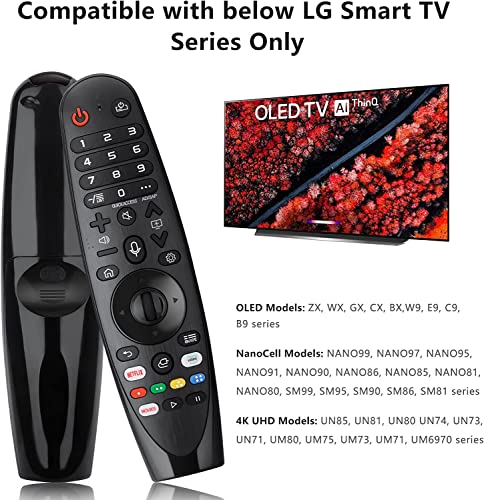 - جهاز تحكم عن بعد بديل بتصميم رائع لتلفزيون ال جي الذكي مع خاصية القدرة على التحكم بواسطة المؤشر والنقر والتمرير والصوت. (بدون جيروسكوب) لا يوجد تأخير في الاستجابة ويمكنه تتبع قنوات التلفزيون بسرعة، كما أنه مريح وسريع للغاية.