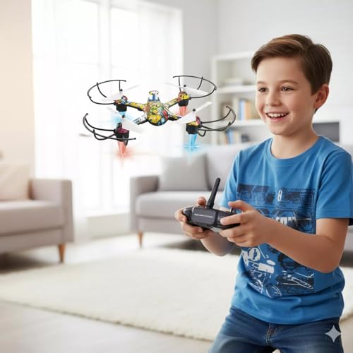 - تصميم ملون جذاب: تتميز بتصميم ملون نابض بالحياة مع أربع مراوح قوية توفر استقراراً ممتازاً أثناء الطيران