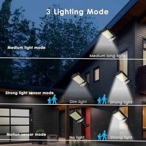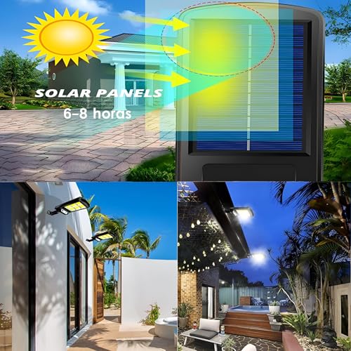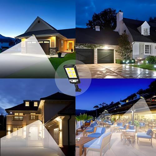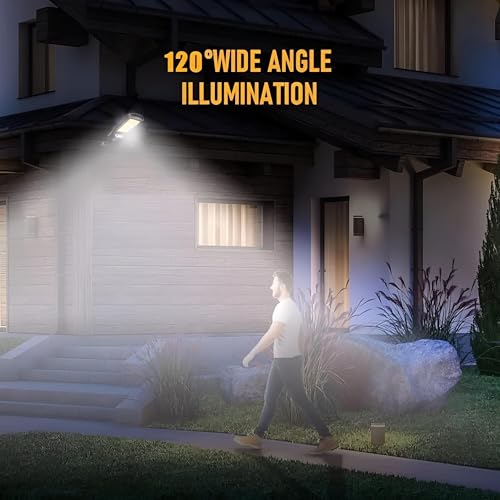Generic - مصباح بجهاز تحكم عن بعد - يعمل بالطاقة الشمسية 120 مصباح LED مع تقنية كشف الحركة، IP65، 500 لومن، 3 اوضاع، وقت تشغيل 8-10 ساعات، اسود للفناء والحديقة والعشب