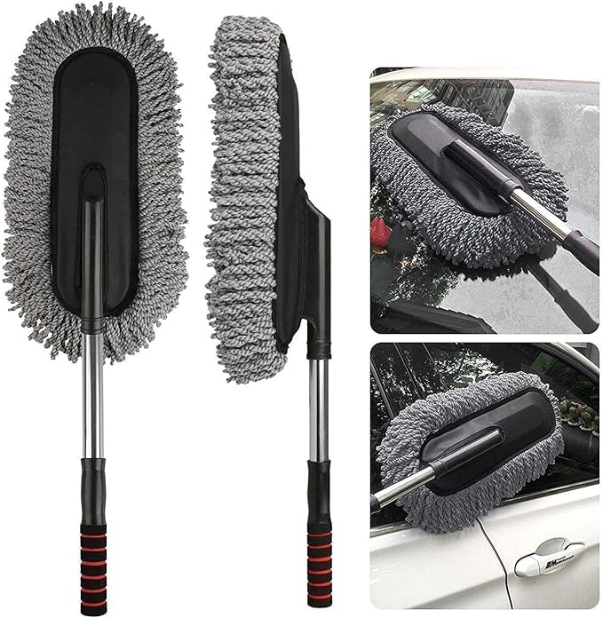 Generic - فرشاة تنظيف سيارات قابلة للإزالة مع مقبض تلسكوبي، فرشاة بألياف فايبر نانو لسحب وتنظيف الأسطح الداخلية والخارجية للسيارة،لتنظيف الغبار من المايكروفايبر للسيارة او المنزل