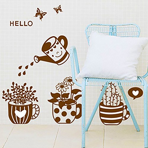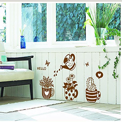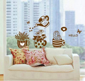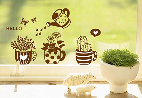 Other - ملصقات حائط قابلة للازالة - ديكور زجاجي لطيف للوعاء والنباتات
