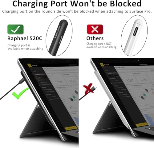 - 【توصيل مغناطيسي وأطراف قلم سيرفس الأصلية مدعومة】تمامًا مثل قلم سيرفس الأصلي 2017، يتم توصيل قلم 520C بجهاز سيرفيس*، يمكنك حمل القلم على الجانب الأيسر من سيرفس برو/جو/بوك. * سيرفس برو 9/ سيرفس برو 8/ سيرفس لاب توب ستوديو غير مدعوم. يأتي مع رؤوس قلم عالية الجودة من نوع اتش بي و2H، فهو يوفر احتكاكًا لطيفًا تمامًا مثل الكتابة على الورق الحقيقي.