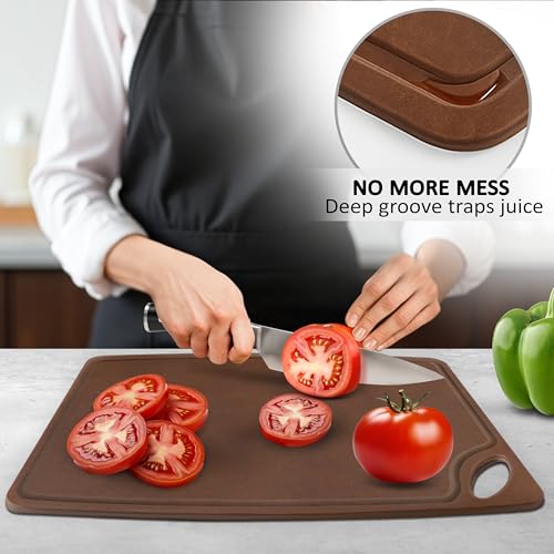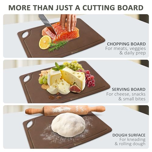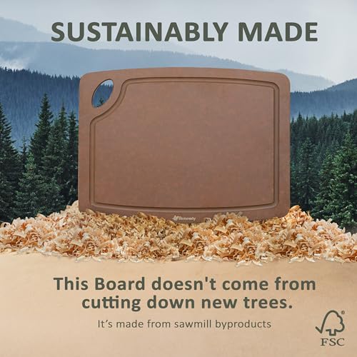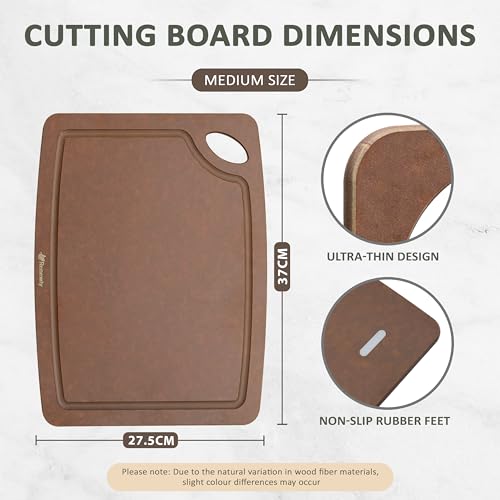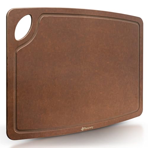 Renewly - لوح تقطيع من الياف الخشب من رينيولي - امن للاستخدام في غسالة الصحون، سطح تقطيع غير مسامي صديق للسكين، مقاوم للحرارة، مضاد للبكتيريا، قاعدة غير قابلة للانزلاق (37 × 27.5 × 0.7 سم)