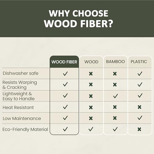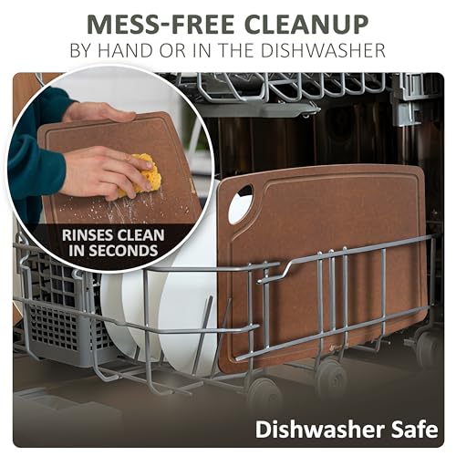 - آمن للاستخدام في غسالة الأطباق - نعم، لوح تقطيع من الألياف الخشبية يمكن وضعه في غسالة الصحون! استخدميه وشطفه بسرعة، ثم ضعه مباشرة في غسالة الصحون دون اعوجاج أو تورم.