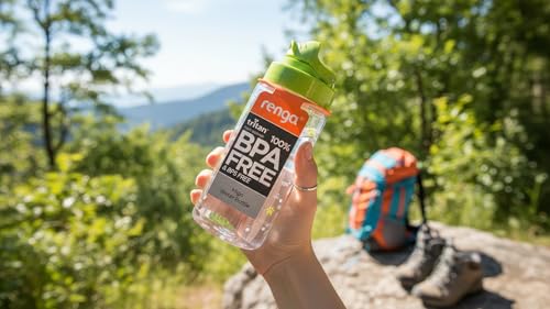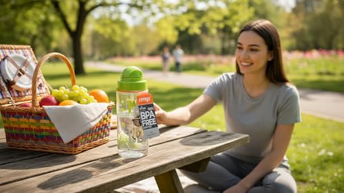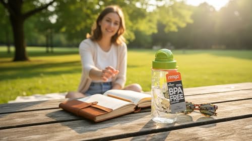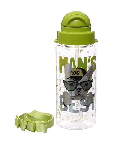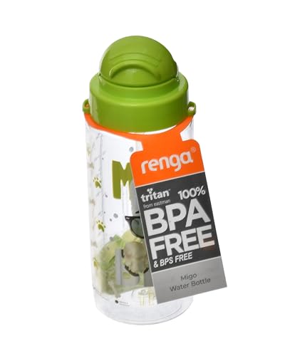 Renga - زجاجة مياه تريتان مزينة بماصة من ميجو، سعة 500 مل، لون اخضر
