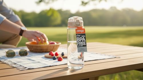 Renga - زجاجة مياه تريتان مزخرفة ملونة من ريبو-اكس، 630 مل، ابيض