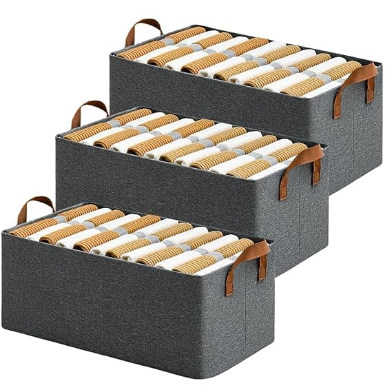 RENVA - صناديق تخزين قماشية كبيرة قابلة للطي من 3 قطع مع مقابض لتنظيم الألعاب والكتب والأرفف والخزانة من رينفا
