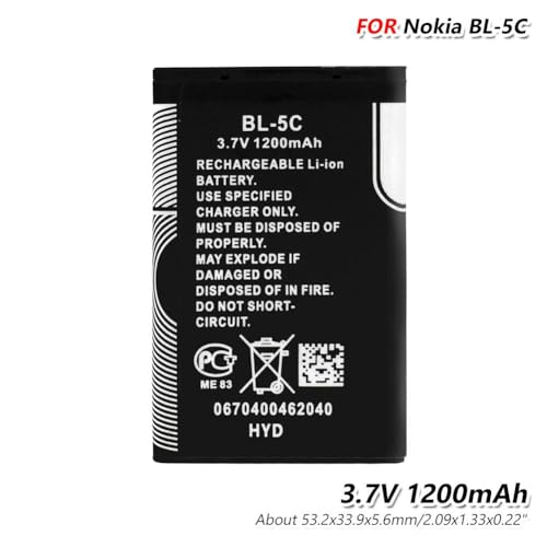 Generic - بطارية بديلة BL-5C متوافقة مع نوكيا 6600، 1100، 1101، 1110، 3100، 3109، 2626، 2610، 2300، 2310، 2280، 1200، 1208، 1209، 1600 | 1020mAh
