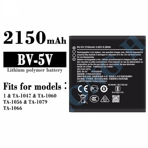 Generic - بطارية بديلة BV-5V متوافقة مع نوكيا 1 TA-1047 TA-1060 TA-1056 TA-1079 TA-1066 | 2150mAh