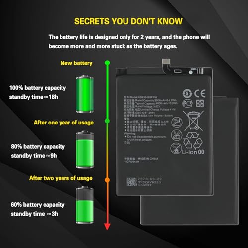 - هيكل عالي الجودة: مصنوع من خلايا ليثيوم أيون عالية الجودة لضمان إخراج طاقة مستقر ومتانة طويلة الأمد متوافق مع هاتف هواوي الذكي