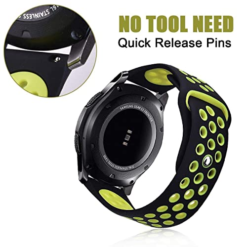 Generic - سوار بديل متوافق مع ساعة جير S 3 فورتنير - كلاسيك 22 ملم سيليكون ناعم مزود بمسامات للتهوية سامسونج S3 وساعة جالكسي 46 اسود واصفر للجنسين