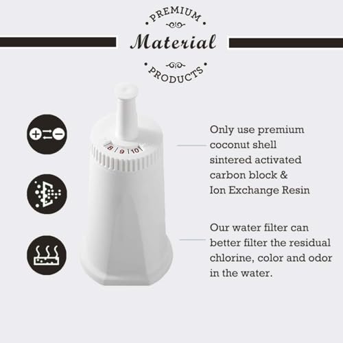 - 【فلتر مياه بديل مثالي】: بريفيل. يتكون فلتر المياه كلارو سويس من كربون جوز الهند النشط وراتنجات التبادل الأيوني التي تجعل مذاق الماء أفضل وتحسن نكهة القهوة وتقلل من صلابة الماء. (يزيل رائحة الكلور والشوائب الأخرى)