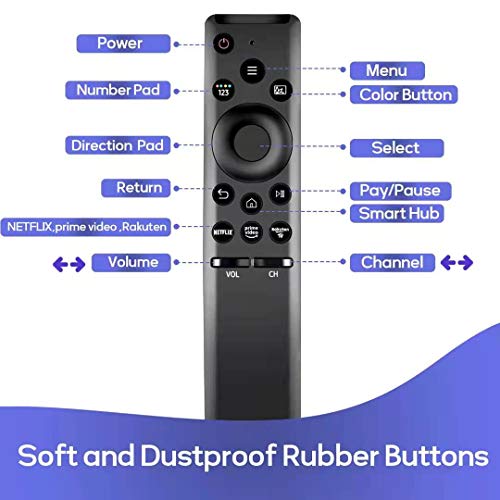 - [جودة عالية] جهاز التحكم عن بعد البديل الخاص بنا لتلفزيون سامسونج الذكي مصنوع من مادة ABS، متين ومقاوم للسقوط، لن ينكسر بعد سنوات عديدة من الاستخدام. والأزرار مصنوعة من مطاط عالي الجودة، ناعمة وصديقة للبيئة، تتحمل أكثر من 100,000 اختبار نقرة.