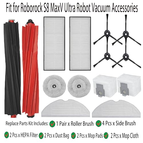 YERXPAFT - مجموعة قطع غيار لمكنسة روبوروك S8 ماكس في الترا الروبوتية تتضمن فرشاة رئيسية و4 فرش جانبية وفلترين وسادتين مساحة موب وقماشتين مساحة موب وكيسين غبار