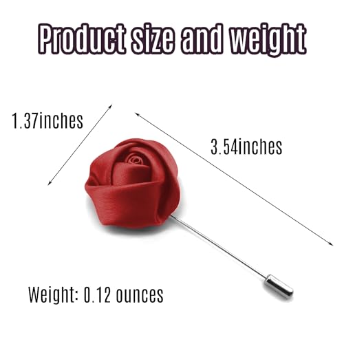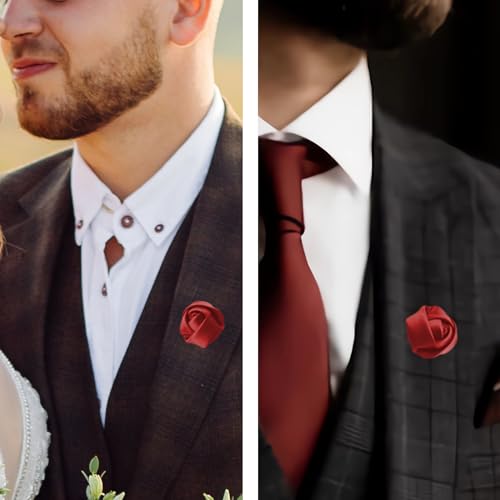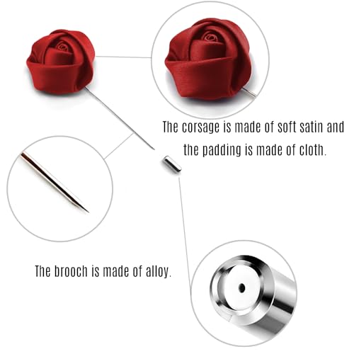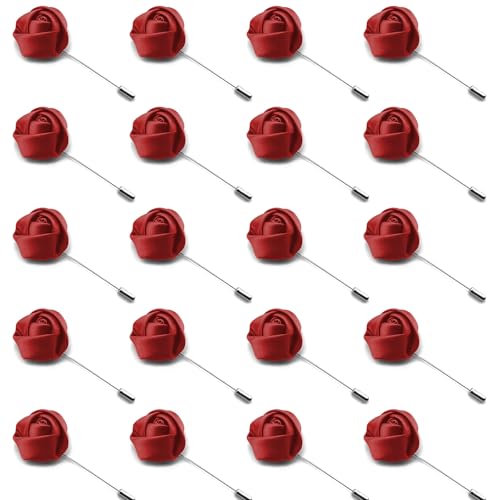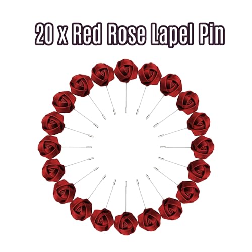 Rerixch - دبابيس لطية الصدر بتصميم زهرة، بروش أزهار طية صدر لبدلات ال جال، دبابيس طية صدر بتصميم وردة حمراء مصنوعة يدويًا، دبابيس زهور لبدلة عرس ساتان، بروش بدلة زفاف، اكسسوارات ملابس من ريريكسش، 20 قطعة