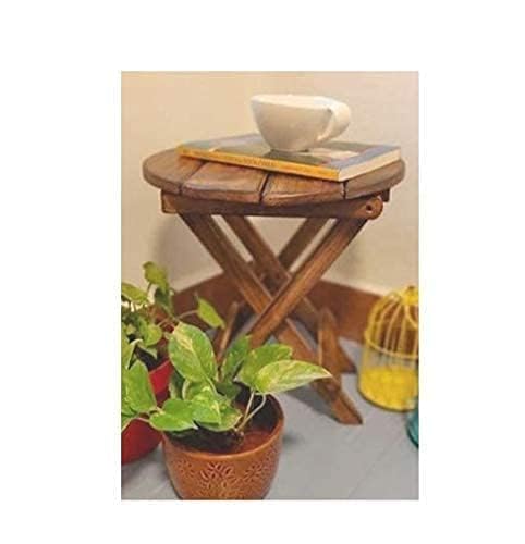 RESHUZ - طاولة جانبية قابلة للطي من الخشب العتيق الجميل من ريشوز من خشب المانجو بلمسة نهائية عتيقة، طاولة قهوة جانبية قابلة للطي / مقعد زراعة للمنزل والحديقة والشرفة والنباتات الداخلية (خشب المانجو (طاولة 30