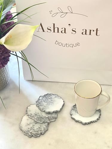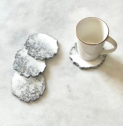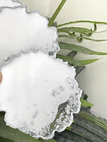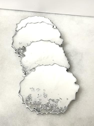 Generic - قواعد أكواب من الراتنج مع لمسات فضية، 4 قطع (فضي)