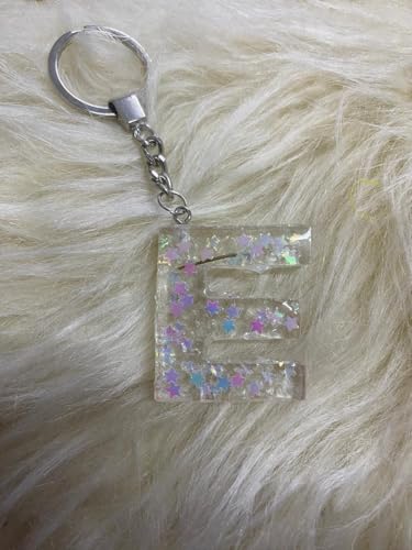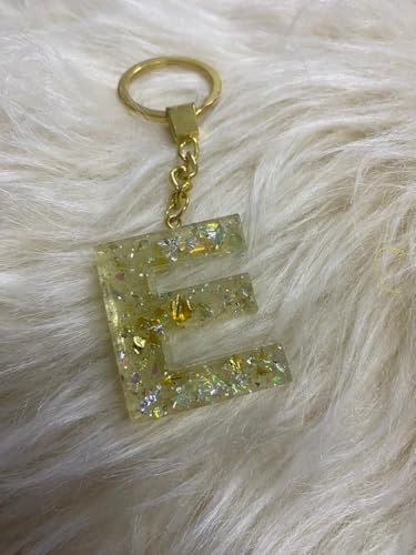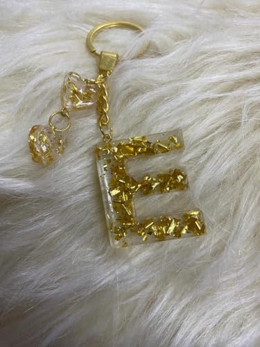 Generic - سلسلة مفاتيح من الراتنج على شكل حرف E مع دلاية على شكل قلب، تصميم جليتر ثلاثي الابعاد، خيارات ذهبية وارجوانية