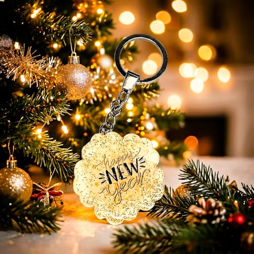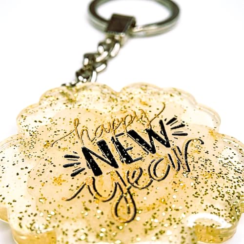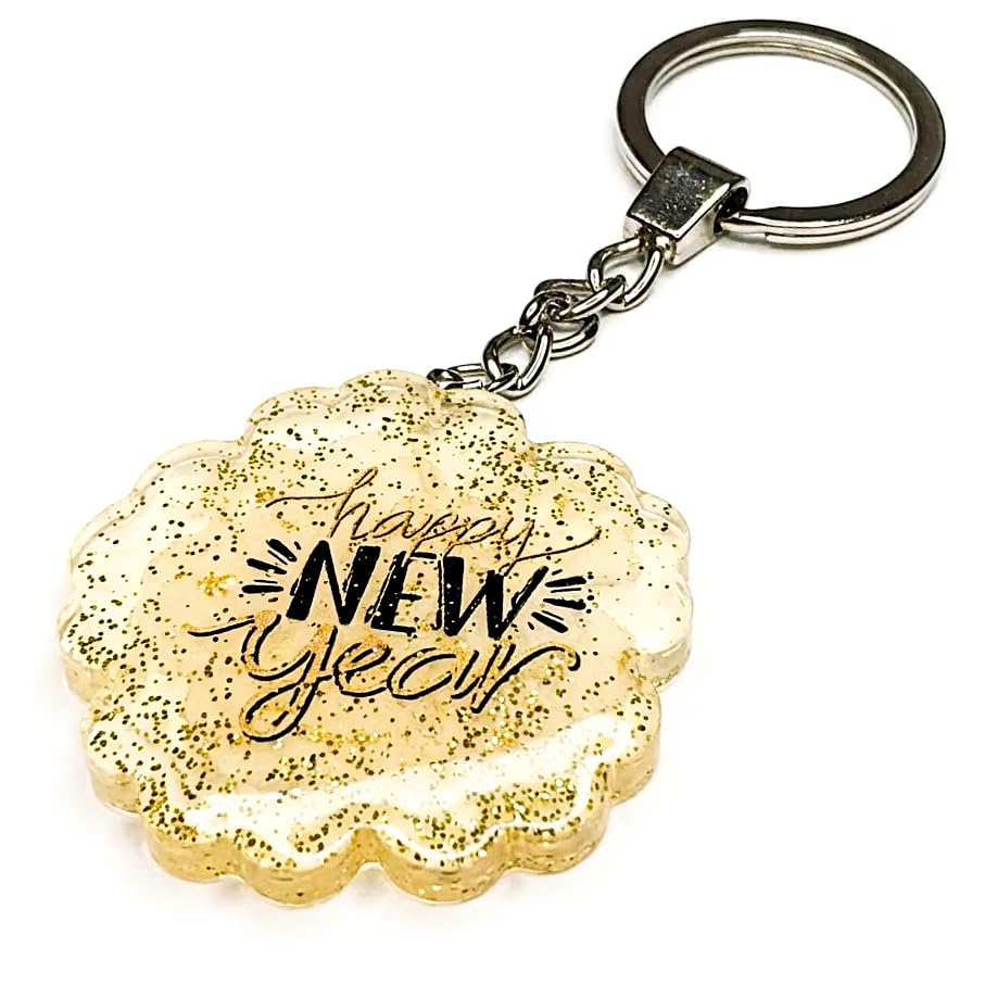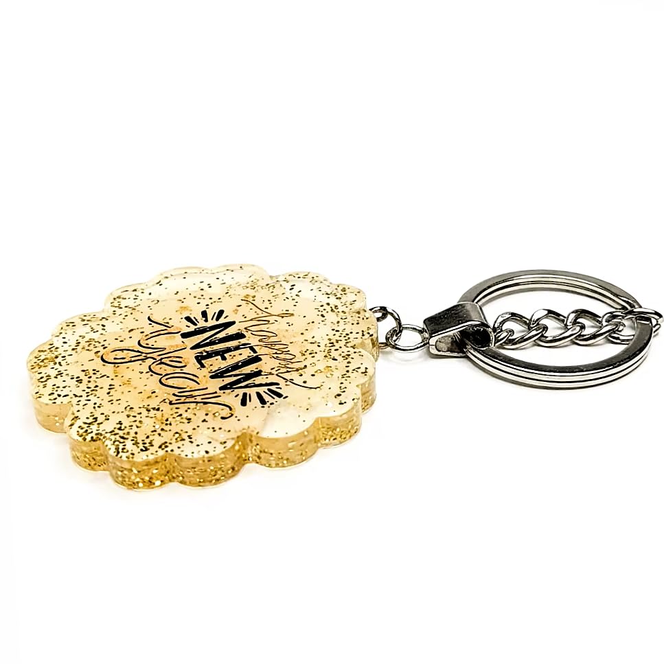 Generic - ميدالية العام الميلادي الجديد من الريزن متعددة الاستخدام – تصميم أنيق بلمسة جليتر شفافة للمفاتيح والشنط – هدية مميزة لرأس السنة