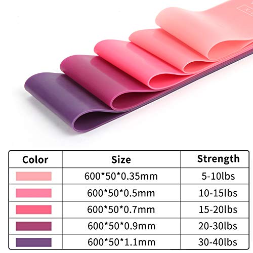 - مستويات مقاومة متنوعة - تتضمن مجموعة أحزمة المقاومة ثيراباند خمسة ألوان وردي متدرجة، تمثل قوة تمدد إضافية. يوفر كل حزام مستوى تمرين مختلف، وهو مناسب لكامل تمارين الجسم والساقين والذراعين والورك والظهر وما إلى ذلك.