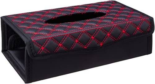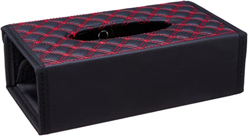 - حافظة علبة مناديل - اللون اسود مع خطوط حمراء