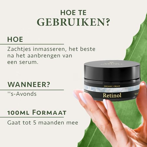 - بشرة نقية ومضادة للشيخوخة - كريم الريتينول العضوي الخاص بنا يؤدي إلى نتائج ممتازة. جرعة عالية من الريتينول وحمض الساليسيليك والصبار العضوي يجعل كريم الريتينول الخاص بنا كريمًا ليليًا فعالًا للغاية. بينما يقلل الريتينول من التجاعيد، يقشر حمض الساليسيليك البشرة ويفتح المسام. الصبار العضوي يرطب بشرتك. مع مصل الريتينول الخاص بنا، يمكنك تحقيق أفضل النتائج.