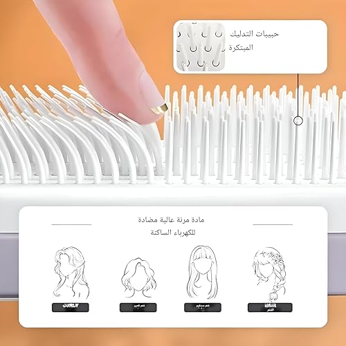 - تم تجهيز كل رأس مشط بجزيئات صغيرة مستديرة توفر تدليكًا لطيفًا لفروة الرأس أثناء الاستخدام. لا تعمل هذه الميزة على تحسين تجربة العناية بالشعر فحسب، بل تعمل أيضًا على تعزيز الاسترخاء وتحفيز الدورة الدموية في فروة الرأس.