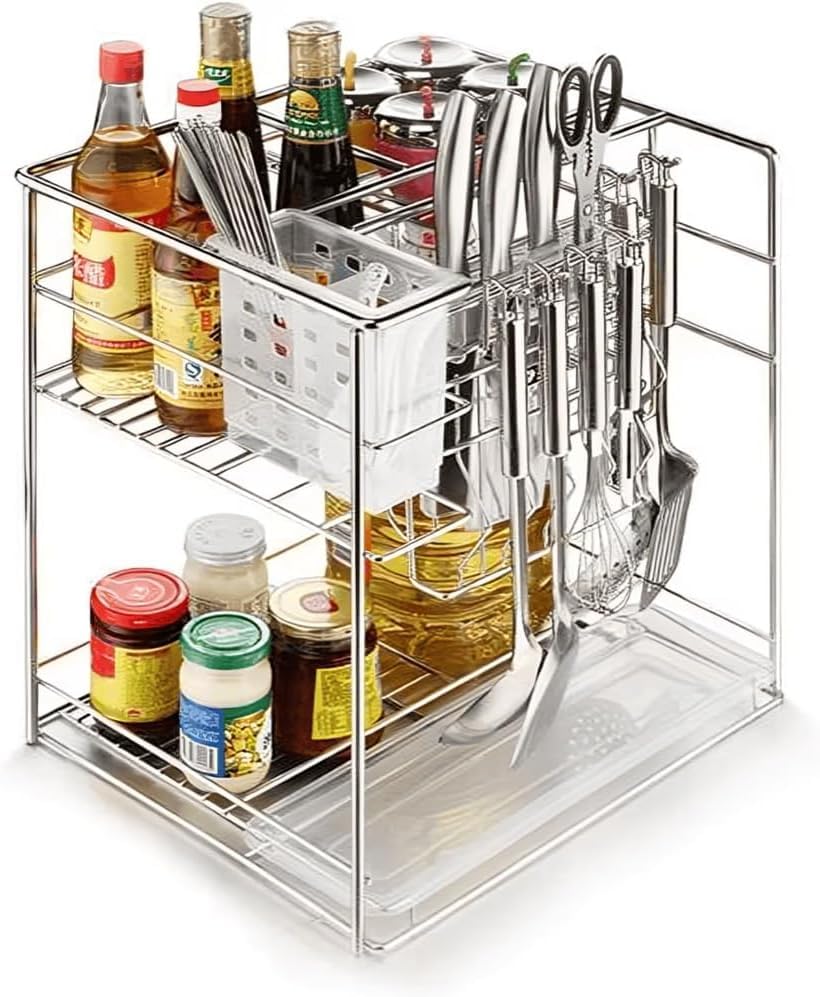 Generic - عربة مطبخ قابلة للسحب، لتخزين أدوات الطبخ وزجاجات الزيت ومنظم التوابل والسكاكين ، مقاس(30سم) ، من الفولاذ المقاوم للصدأ