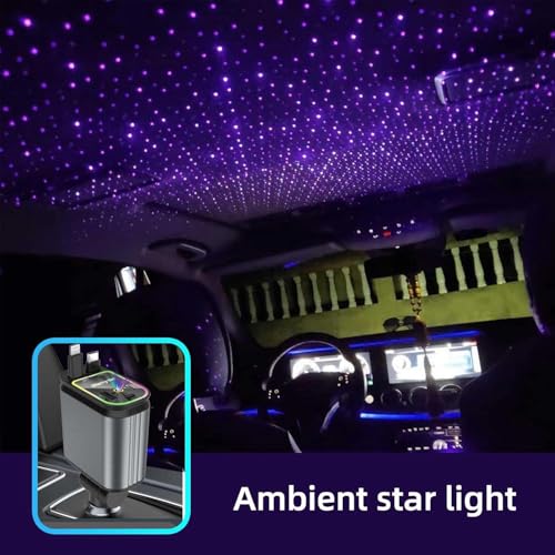 Generic - شاحن سيارة متنقل قابل للسحب مع إسقاط مرصع بالنجوم على السقف | اكسسوارات السيارات شحن سريع وإضاءة LED محيطة - عالمية لجميع الهواتف ضوء السماء المرصعة بالنجوم