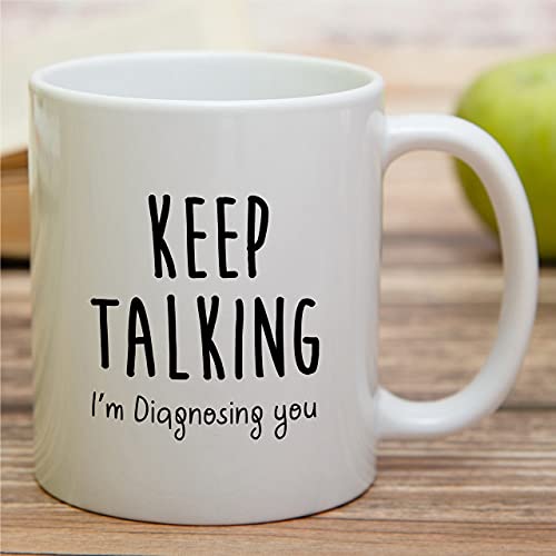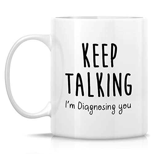 Retreez - ريتز مج مضحك - كوب قهوة سيراميك مطبوع عليه Keep Talking I'm Diagnosing You Psychiatrist logist logy Major- هدية تخرج ملهمة مضحكة للصديق وزميل العمل والأخوة، 11 انوصة