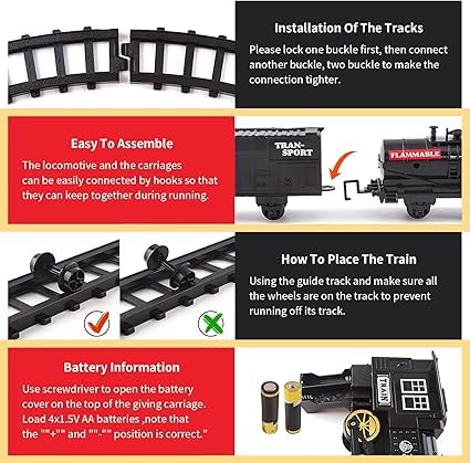 - لعبة تعليمية وترفيهية: تساعد على تطوير المهارات الحركية والإبداعية للأطفال من خلال التجميع واللعب التخيلي مع القطار والمسارات