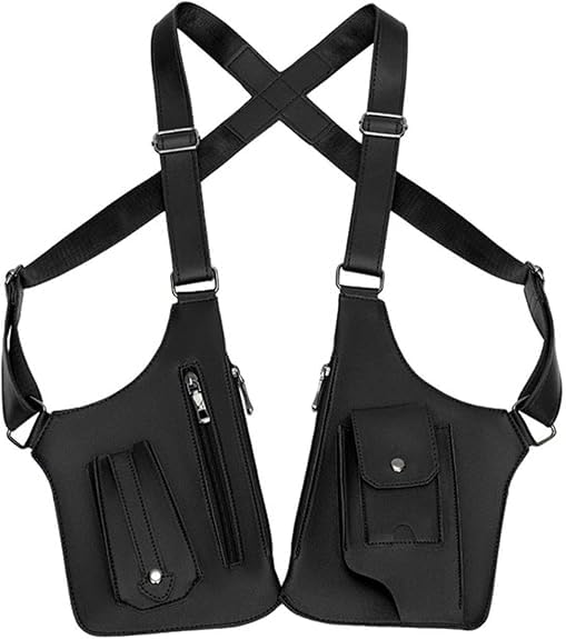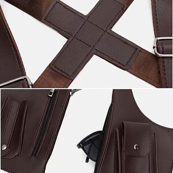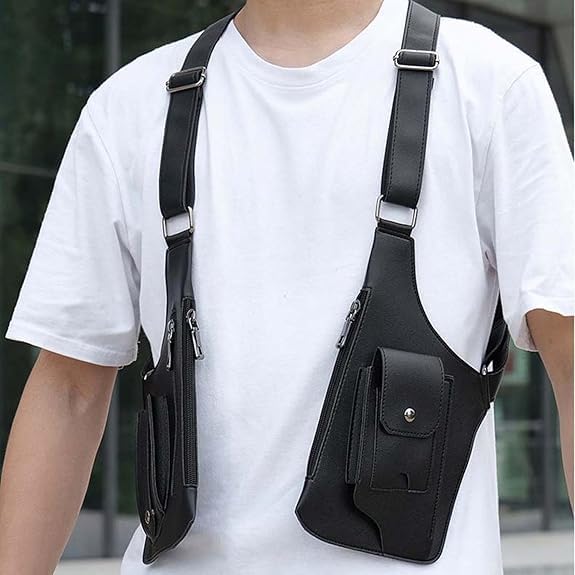 fashion mania - شنطة كتف مزدوجة بتصميم رترو مضادة للسرقة للرجال، شنطة كتف ستيمبنك، محفظة مزدوجة تحت الخصر، حافظة مضادة للسرقة للرجال والنساء