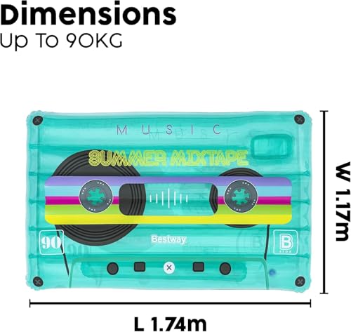 - عوامة حمام السباحة ريترو بيتس تتميز عوامة حمام السباحة ريترو بيتس بتصميم شريط كاسيت ملون من المدرسة القديمة. ضع مزيجك الصيفي المفضل واجلس واسترخي على عوامة حمام السباحة ريترو بيتس من بيست واي