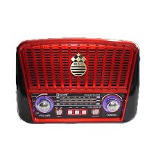 - ١) التصميم الكلاسيكي: راديو بتصميم عصري يجمع بين الطراز الكلاسيكي والتقنيات الحديثة مع واجهة جذابة باللون الأحمر