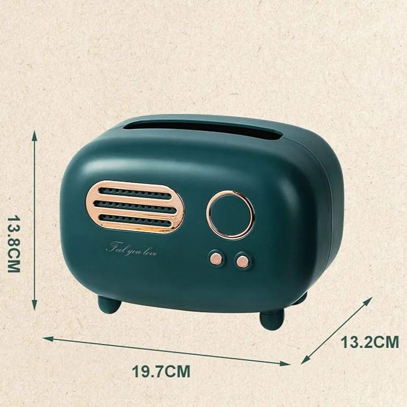 Generic - علبة مناديل على شكل راديو ريترو، تصميم عتيق، لون أخضر وأحمر، حامل مناديل ديكوري