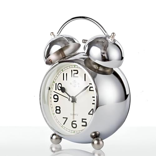Generic - ساعة بتصميم كلاسيكي من الصلب ميكانيكية مزدوجة الجرس مع شاشة ال اي دي ليلية وعقارب أنالوج أنيقة لإطلالة عتيقة، مقاس 4 × 8 سم (موديل 2)