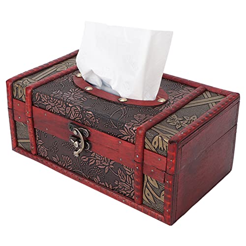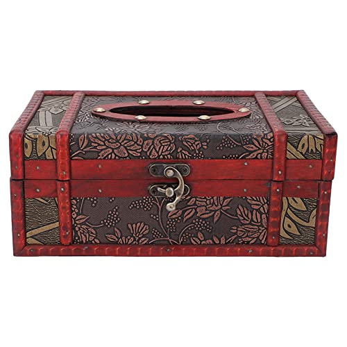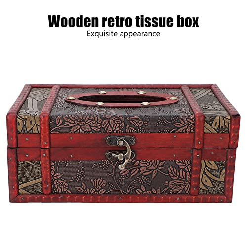 Generic - صندوق مناديل رترو، صندوق تخزين مناديل خشبي لمتجر التدليك وبيت الشاي