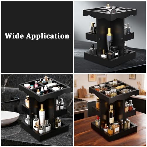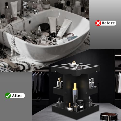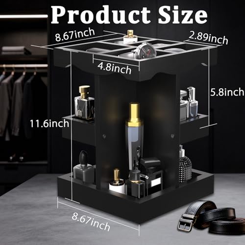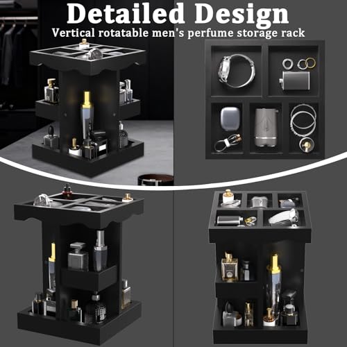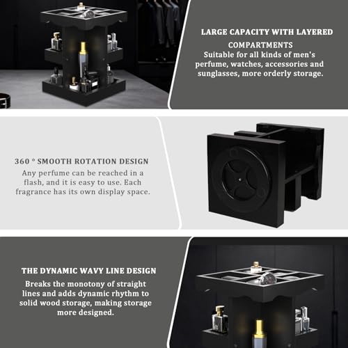 - تصميم فريد يدور 360 درجة: يجمع منظم الكولونيا للرجال الدوار 360 درجة بين العملية والديكور. يبرز النمط الأنيق والعصري بخطوط متموجة، مناسب للمشاهد المتنوعة والرائعة، مما يوفر مساحة تخزين متعددة الوظائف لحمامك وغرفة النوم وغرفة الملابس والحمام والطاولة وسطح الطاولة ومنظم خزانة الملابس.