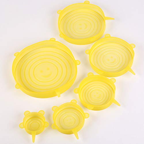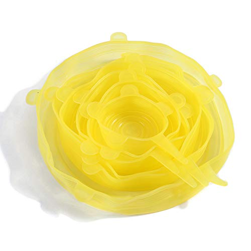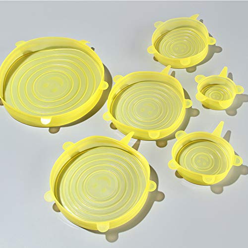 Spaceshoop - مجموعة أغطية سيليكون قابلة للتمدد وقابلة لإعادة الاستخدام مكونة من 6 قطع للأكواب والفواكه والأوعية والطعام محكمة الغلق تحافظ على الطعام والفواكه طازجة (اصفر)