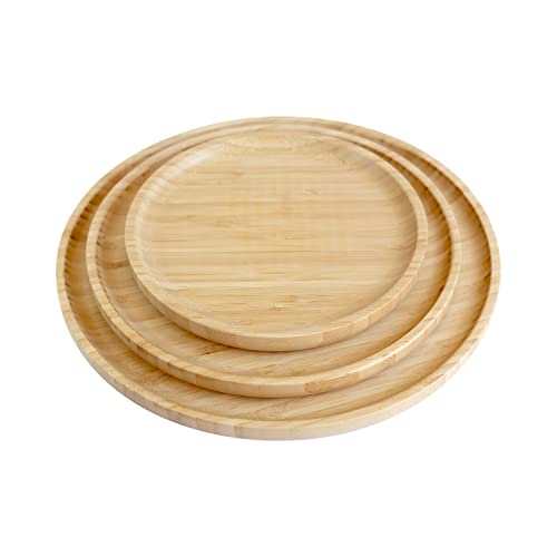 pandoo - اطباق خيزران قابلة لاعادة الاستخدام، 3 مقاسات (مجموعة من 3 قطع (1 × 20 سم، 1 × 25 سم، 1 × 30 سم)