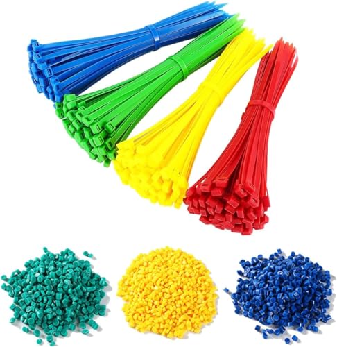 Generic - أربطة كابلات قابلة لإعادة الاستخدام من بلاستيك متين، عبوة متعددة الألوان مع حلقة تثبيت، أزرق وأخضر وأصفر وأحمر، مجموعة من 150 قطعة