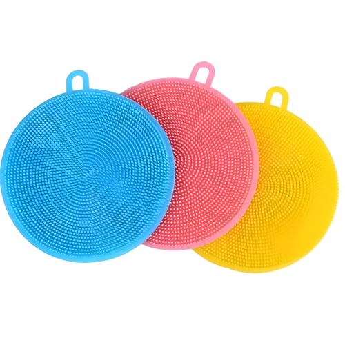 Generic - اسفنجة تنظيف قابلة لاعادة الاستخدام - اسفنجة سيليكون امنة وفعالة لغسالات الصحون وادوات المطبخ والفواكه وتجفيف سريع ومجاني (3 قطع)