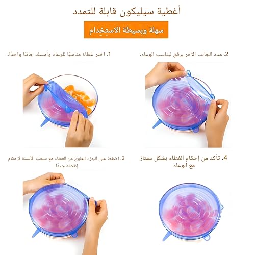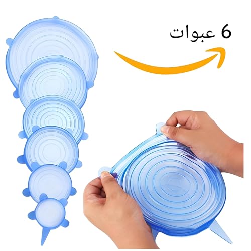 Generic - اغطية سيليكون متينة قابلة لاعادة الاستخدام للاوعية والاطباق، قابلة للتمدد ومحكمة، تحافظ على الطعام طازجًا لفترة اطول، عبوة من 6 قطع