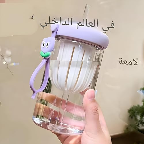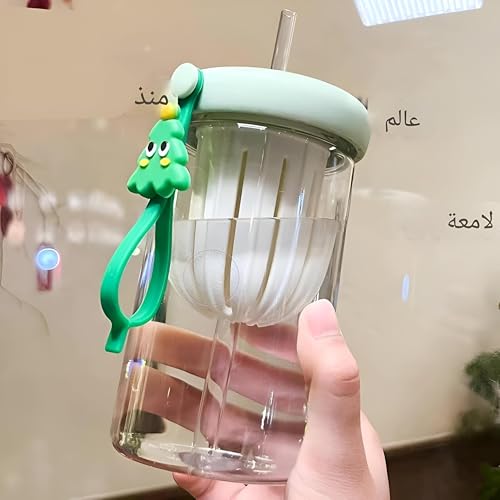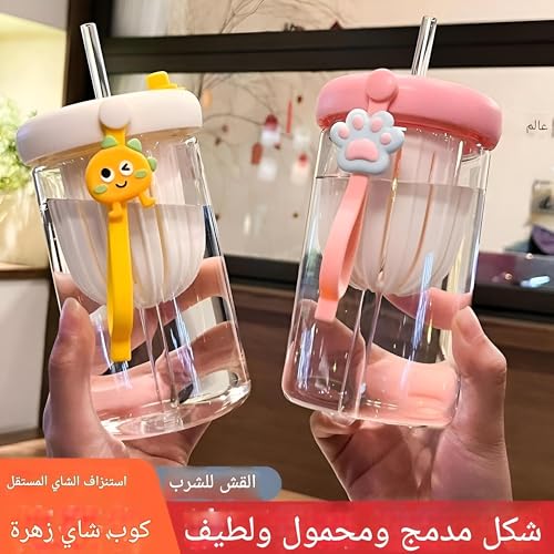 Generic - كوب قابل لإعادة الاستخدام - كوب زجاجي أنيق مع شفاطة وغطاء، مثالي للاستمتاع بالقهوة المثلجة والعصير والشاي أينما ذهبت (الموديل 1)